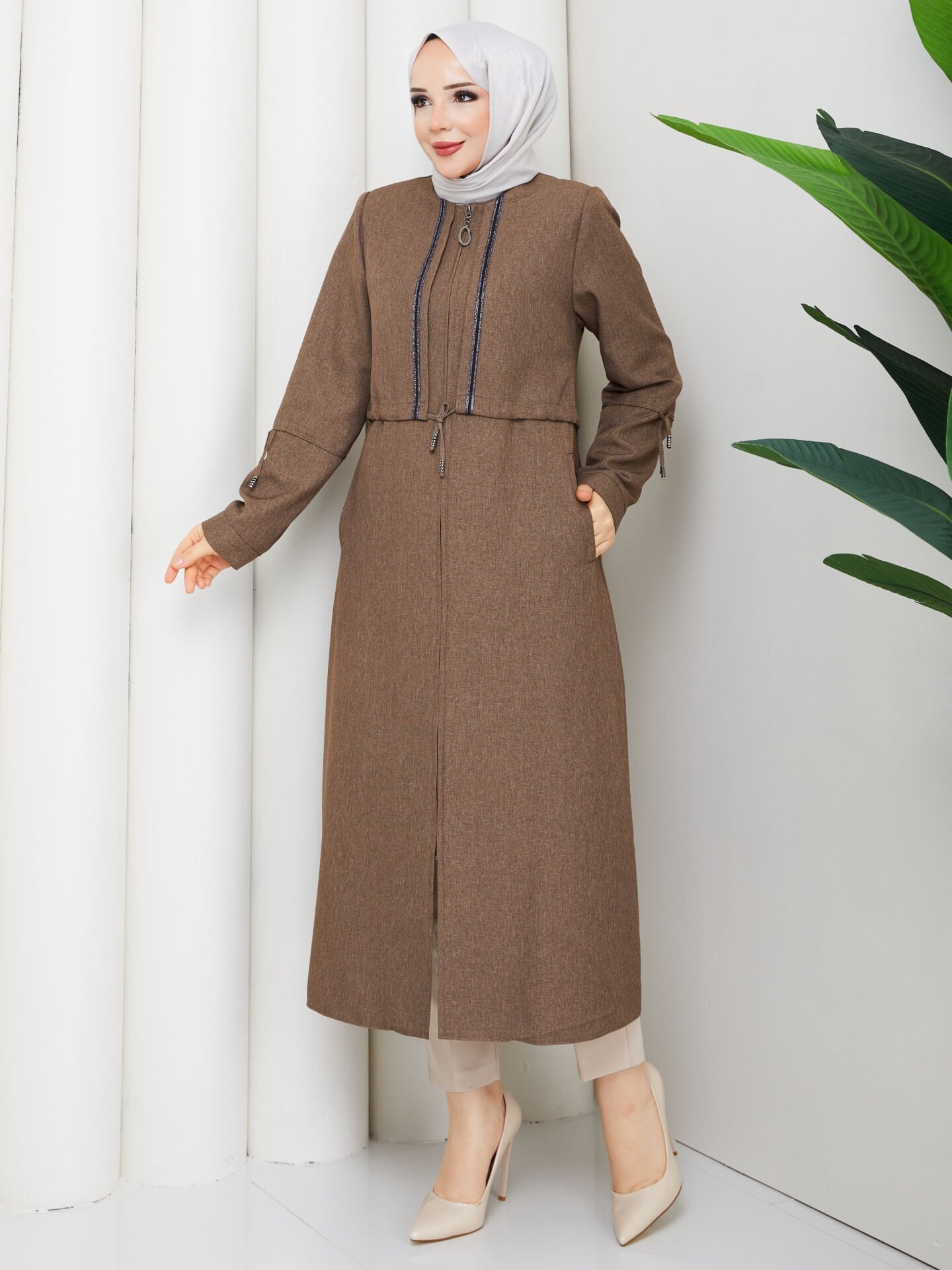 - Kumaş: Yün efektli, mevsim geçişlerine uygun